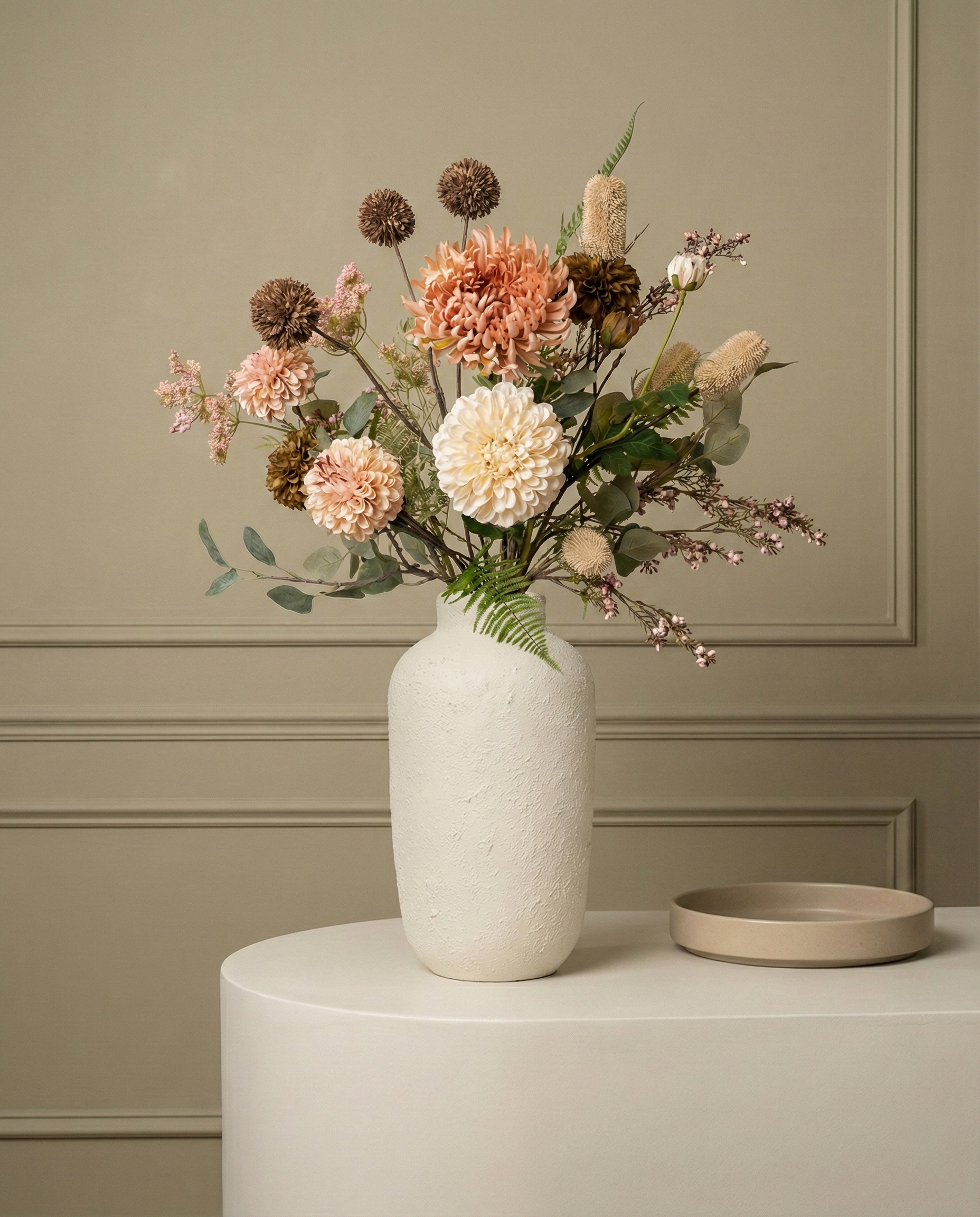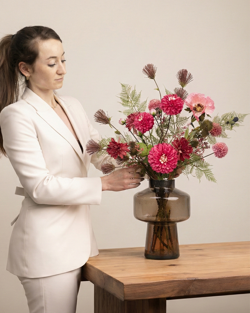 Met een zijden boeket van Nom Nové verfraai je iedere ruimte. Zet ze in de gang voor een stijlvolle entree of verwen jezelf met een mooi boeket naast je bed. Kies één van onze mooie vazen of zet ze in je mooiste eigen vaas en maak van je favoriete zijden boeket het middelpunt van de kamer. Toon je favoriete bloemen aan al je gasten of hou ze juist helemaal voor jezelf. Waar je ook voor kiest: met een veelzijdig boeket van Nom Nové zit je altijd goed.